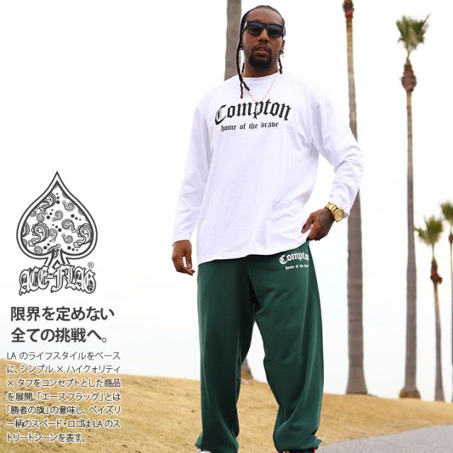 【48%OFF】ACE FLAG 上下セット 長袖 ブランド スケボー メンズ 春秋冬用 白 黒 大きいサイズ エースフラッグ セットアップ ロンT スウェットパンツ Compton コンプトン ビッグシルエット 深緑 b系 ヒップホップ ファッション ストリート系 ハイ AF-SE-LT-152