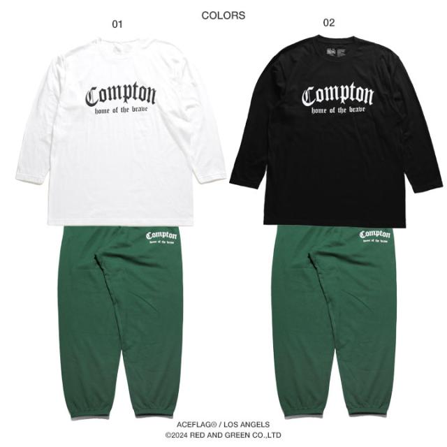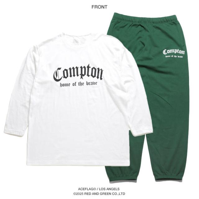 ロンTとスウェットロングパンツに『Compton』をドロップした上下セット。