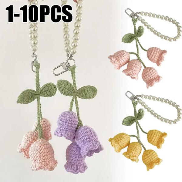 手作りニットデチューリパネスウールかぎ針編み花キーチェーン女性フラワーストリングキーホルダーバッグチャーム装飾