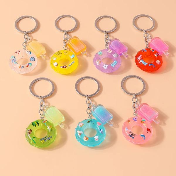 女性と女の子のための手綱シミュレーション水泳リング キーリング ペンダント ハンドバッグの装飾 ジュエリーギフト アイスクリーム キーホルダー かわいい