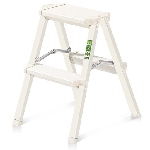 RIKADE 脚立2段 梯子 アルミ 脚立 折りたたみ ミニ 軽量 きゃたつ 踏み台 軽量 安全 ステップ アルミ 二段 脚立 折りたたみステップ 耐荷重150KG 滑り止め付き ステップ台(ホワイト二段)