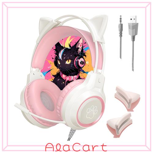 猫耳ヘッドホン ゲーミング ヘッドホン 有線 ゲーミングヘッドセット 女の子 猫耳ヘッドセット オーバーイヤーヘッドホン 可愛い猫耳付き