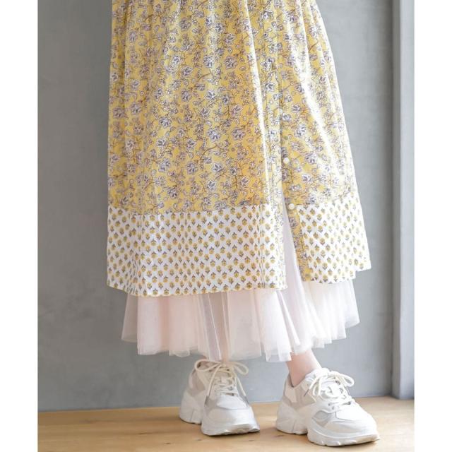 ヨーク部分と袖口、裾のプリントを変えて1枚でも存在感たっぷり。