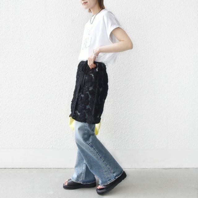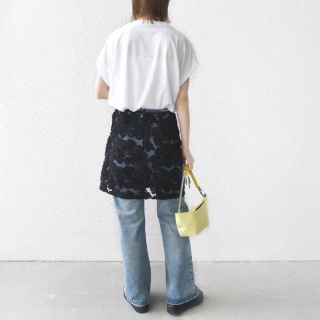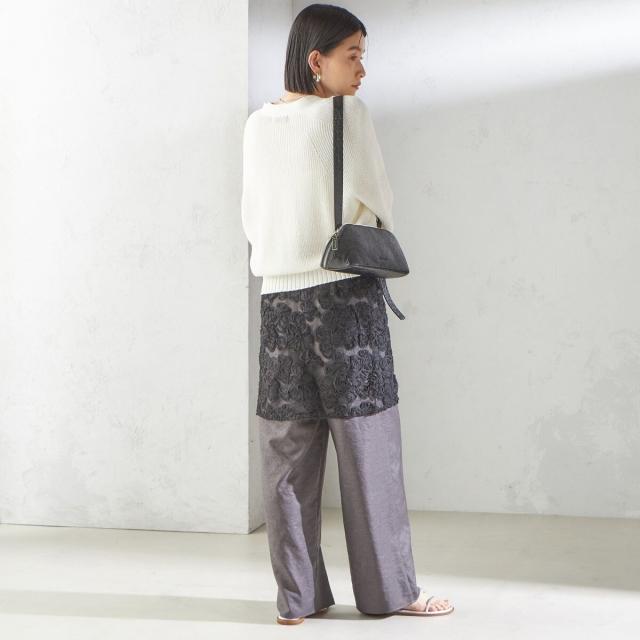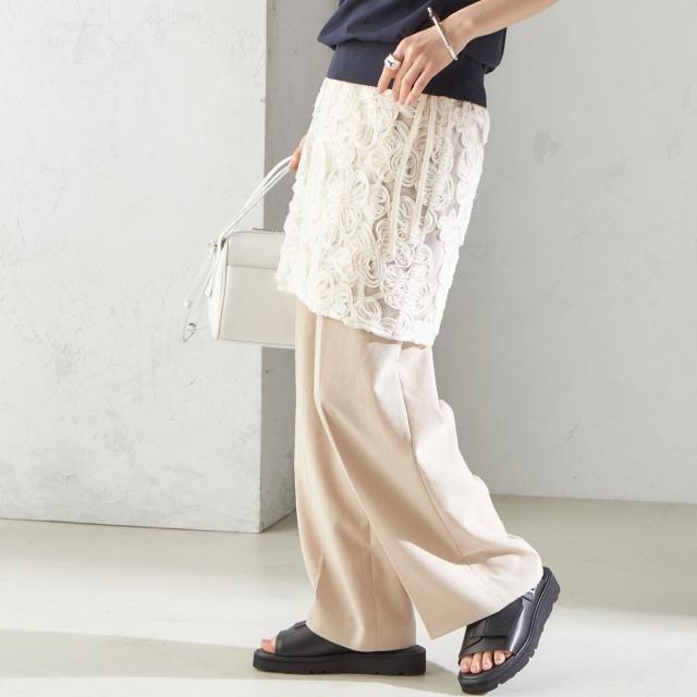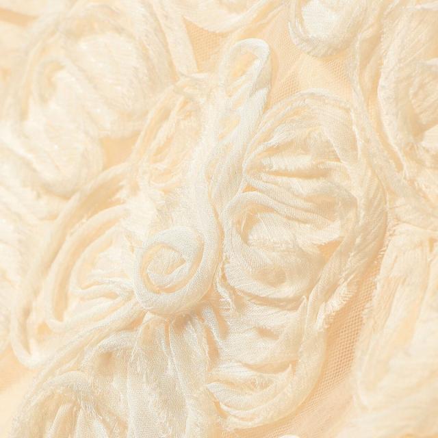 繊細なチュールに立体感のあるフラワーモチーフ刺繍が施された、クラフト感ある華やかな素材を使用。