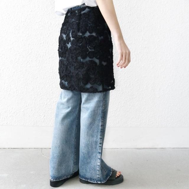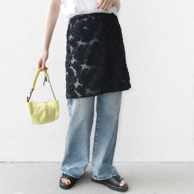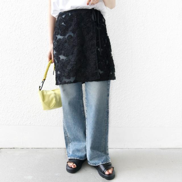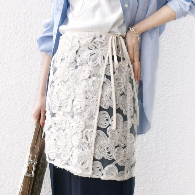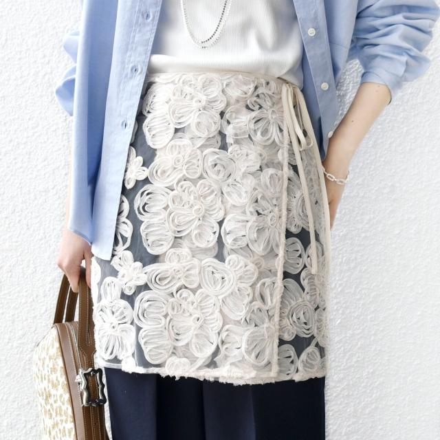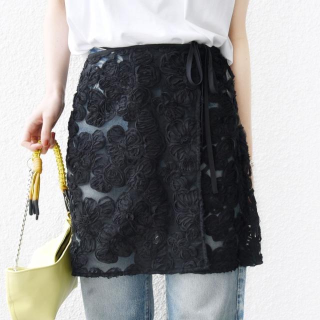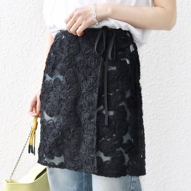 〈手洗い可能〉フラワー 刺繍 チュール ラップ スカート