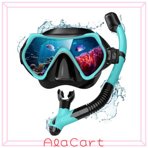 【2点セット】Findway マスク&スノーケルセット 大人 シュノーケリングセット シュノーケル 大人 曇り止め&UVカット 強化ガラス シリコ