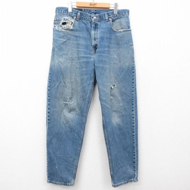 古着 ジーンズ メンズ 90年代 90s USA製 紺 ネイビー デニム W35 中古 ボトムス ジーパン Gパン ロング パンツ 中古 古着