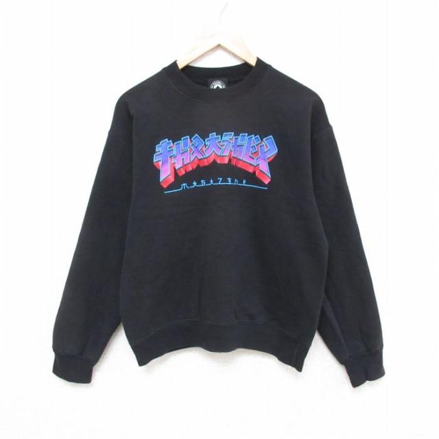 古着 スラッシャー 長袖 スウェット メンズ キガヌ大ラガビヌ クルーネック 黒 ブラック Mサイズ 中古 スエット トレーナー ト 中古 古着