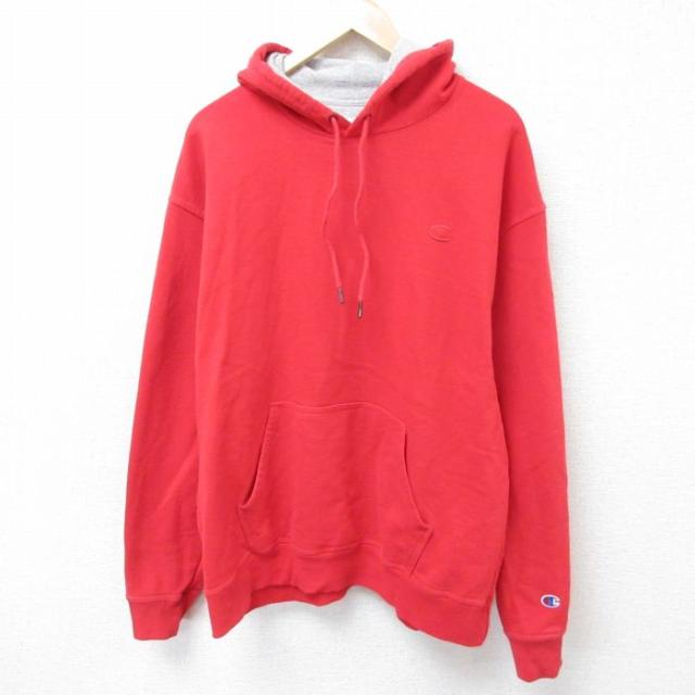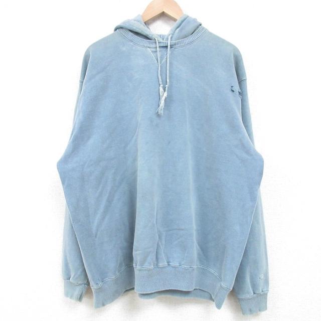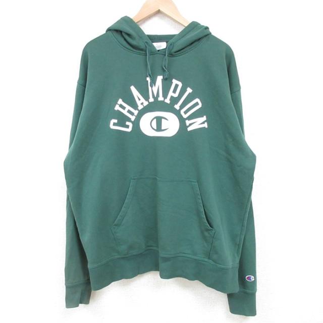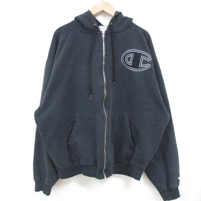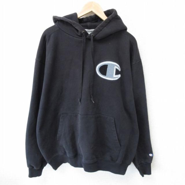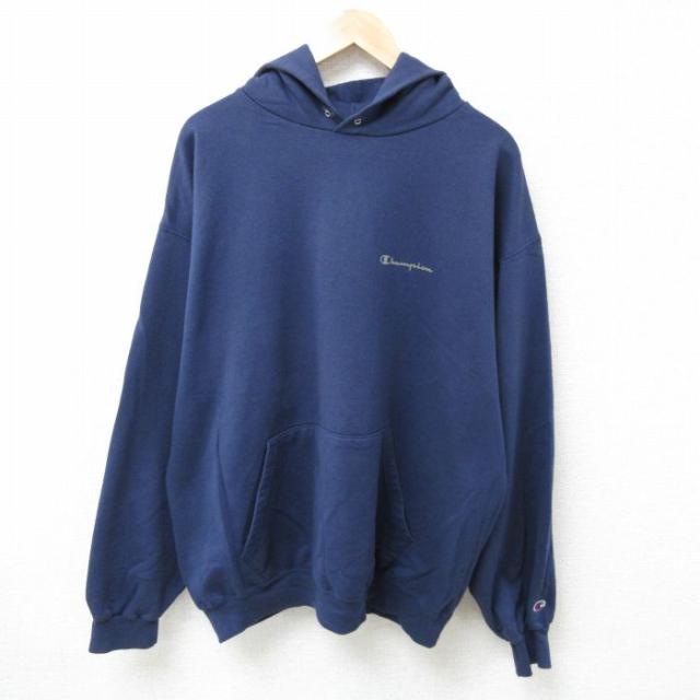 古着 チャンピオン Champion 長袖 スウェット パーカー メンズ ビッグロゴ 紺 ネイビー XLサイズ 中古 スエット トレーナー ト 中古 古着