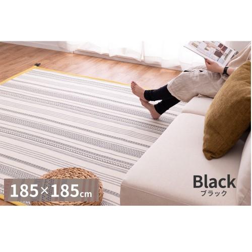 ラグ カーペット ブラック 約185×185cm インド綿 ラグ テラ すべり止め付き 【北海道・沖縄・離島 送料別】