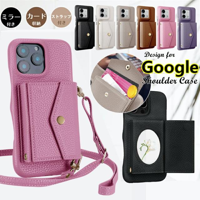 google pixel9 ケース ミラー付き カード収納 Google Pixel 9 Pro XL 8A 7A Pixel7 Pixel 6 スマホショルダーケース スマホケース カバー お洒落 かわいい 背面 カード入れ ピクセル9aケース ピクセル6a ピクセル7a 携帯ケース ショルダー ストラップ付き ミラー 鏡 可愛い