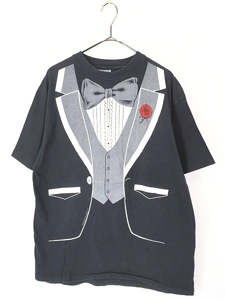 古着 80s USA製 タキシード バラ だまし絵 Tシャツ XL 古着