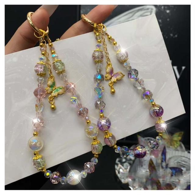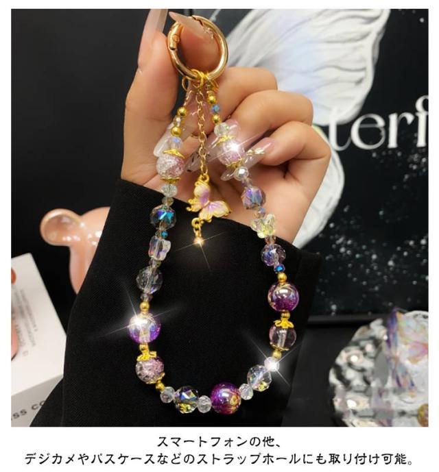スマホストラップ キラキラ スマホ ハンドストラップ 手首 携帯ストラップ キーホルダー おしゃれ かわいい 紐 ひも 蝶々 合金 レディース 女子 短い 落下防止 ショートストラップ リストストラップ アウトドア カラビナ カラフル
