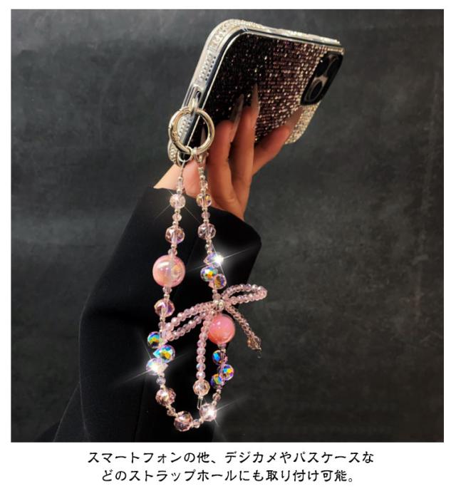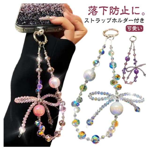 スマホストラップ ストラップホルダー付き キラキラ スマホ ハンドストラップ 手首 携帯ストラップ おしゃれ かわいい リボン 可愛い レディース 女子 短い 落下防止 ショートストラップ リストストラップ アウトドア キーホルダー