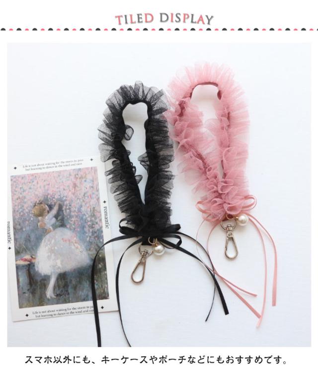 スマホ ストラップ 手首 かわいい スマホストラップ 手首 韓国 パール フリル ハンドストラップ 可愛い スマホ ハンドストラップ チュール チェーン 落下防止 スマホチェーン おしゃれ 紐 携帯ストラップ 大人かわいい