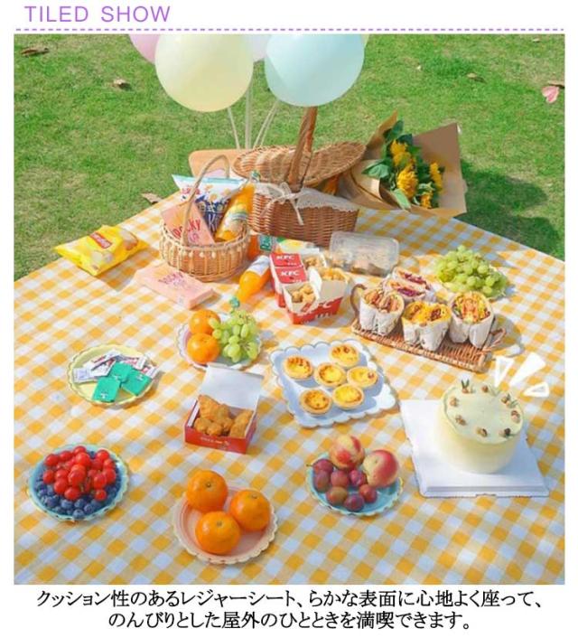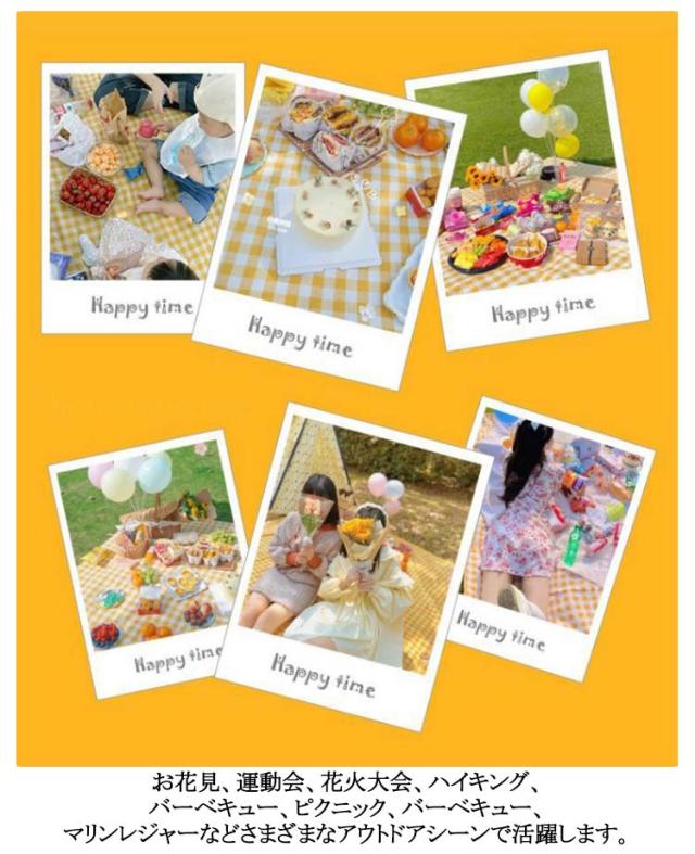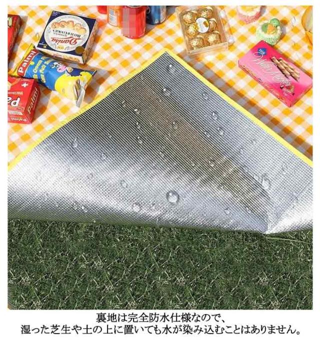 | 地面が濡れても、ジュースがこぼしても安心の両面防水ピクニックマット。 クッション性のあるレジャーシート、らかな表面に心地よく座って、のんびりとした屋外のひとときを満喫できます。 汚れてもさっと拭けて、お手入れ簡単の防水素材、キャンプやBBQなどの際にもぜひご活用ください。 裏地は完全防水仕様なので、湿った芝生や土の上に置いても水が染み込むことはありません。 お花見、運動会、花火大会、ハイキング、バーベキュー、ピクニック、バーベキュー、マリンレジャーなどさまざまなアウトドアシーンで活躍します。 | |