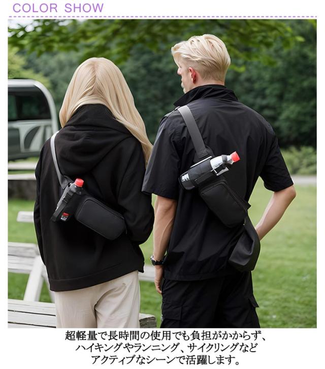 | カジュアルもスポーテーも幅広くマッチするウェストポーチ。 軽くて丈夫なナイロン素材、耐久性と撥水性に優れ、突然の雨や水濡れにも対応。中身をしっかり保護し、長期間安心して使用可能です。 超軽量で長時間の使用でも負担がかからず、ハイキングやランニング、サイクリングなどアクティブなシーンで活躍します。 コンパクトながら大容量♪背面ポケットは貴重品を安全に保管、フロントポケットはスマホや鍵など小物をすぐに取り出せます。 専用のボトル収納ポケットも完備し、固定バンドとクロス仕上げでボトルをしっかり固定。激しい動きの中でも外れる心配がありません。 シンプルでスタイリッシュなデザインは男女兼用で幅広く使用可能。ボトル固定設計や複数ポケットによる整理整頓のしやすさも魅力です。 リュックでは大げさなちょっとした運動のお供に最適です。 斜め掛けにしてボディポーチとしてもご使用いただけます。 | |