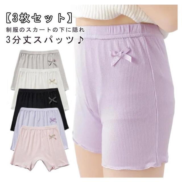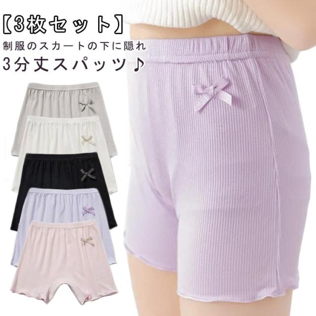 インナーパンツ 3枚セット オーバーパンツ 3枚セット ジュニア インナーパンツ 三分丈スパッツ 通学 コットン 下着 スパッツ スカート 通園 学生 ペチコート 幼稚園 キッズ 制服 アンダーパンツ 制服 安全ショーツ フリル 裾 ペチパンツ