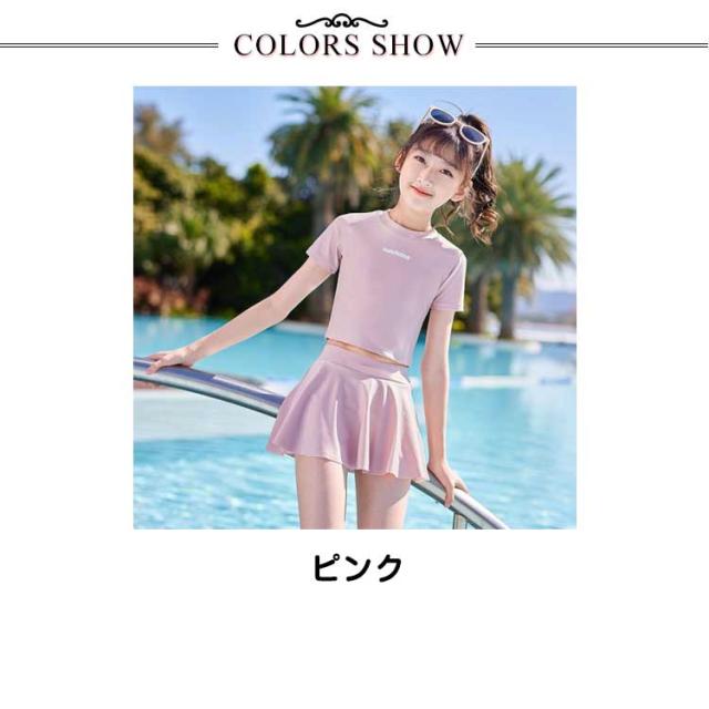 キッズ 水着 女の子 半袖 水着 上下セット 子供 スクール水着 インナーパンツ付き スカート ジュニア水着 ガールズ 子ども用 スイムウェア 水着 スポーツウエア 子ども みずぎ スイミングウェア プール 海 ビーチ 可愛い 110 120 130 140 150 160cm 送料無料