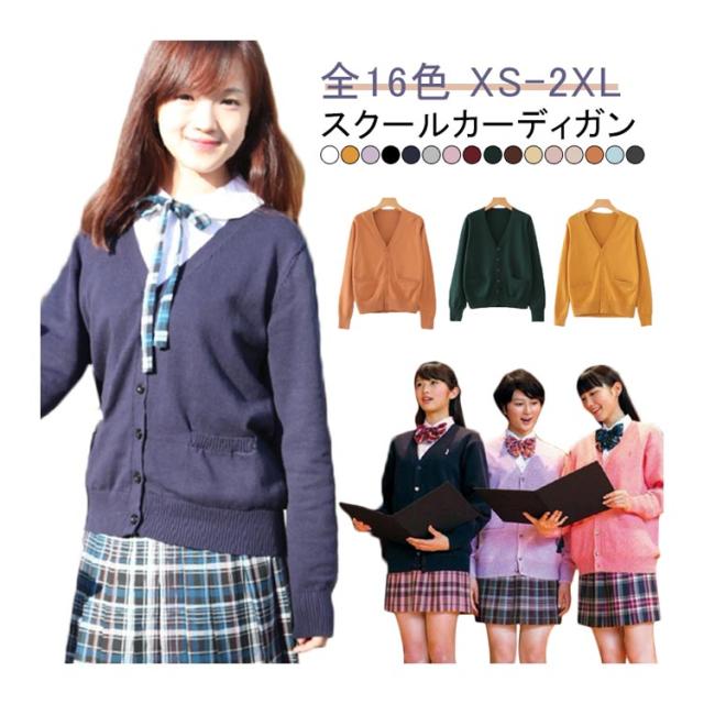 大きいサイズ コスプレ コットン 高校生 学生 制服 jk イベント レディース 女子 綿 スクールカーディガン スクールセーター 長袖 ニット 学園祭 紺 冬通学 黒 白 16色 小さい ゆったり 正統派 スクールカーディガン 秋 厚い 中学生 無地 キッズ無地 女の子