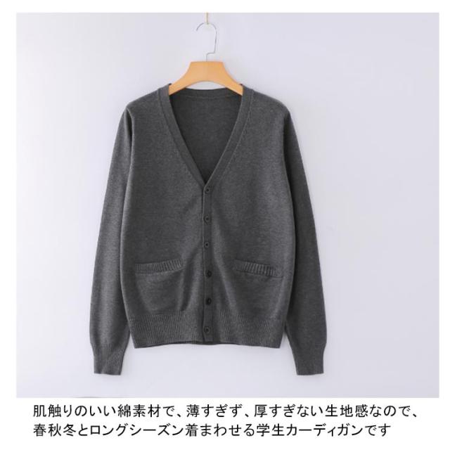 | スクールカーディガン 全16色 オールシーズン適用 肌触りのいい綿素材で、薄すぎず、厚すぎない生地感なので、春秋冬とロングシーズン着まわせる学生カーディガンです なデザインで、年齢を選ばず、男女兼用するニートウェアです。 普段はもちろん、色々なシーンで着用できる万能のカーディガンです | |