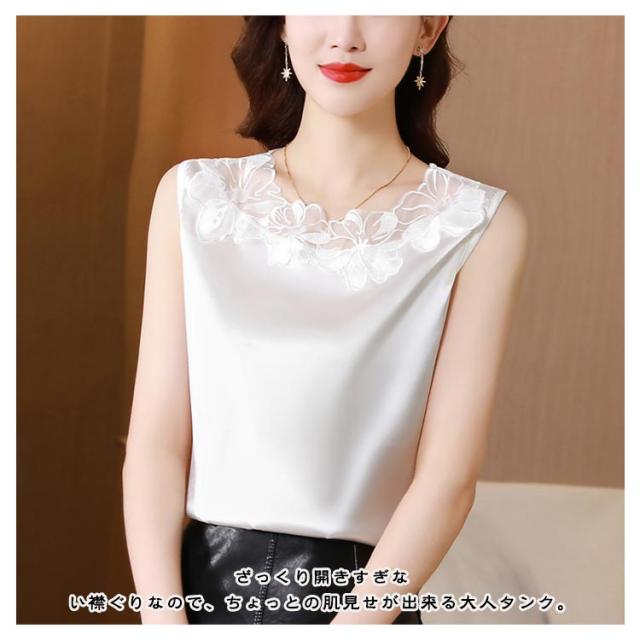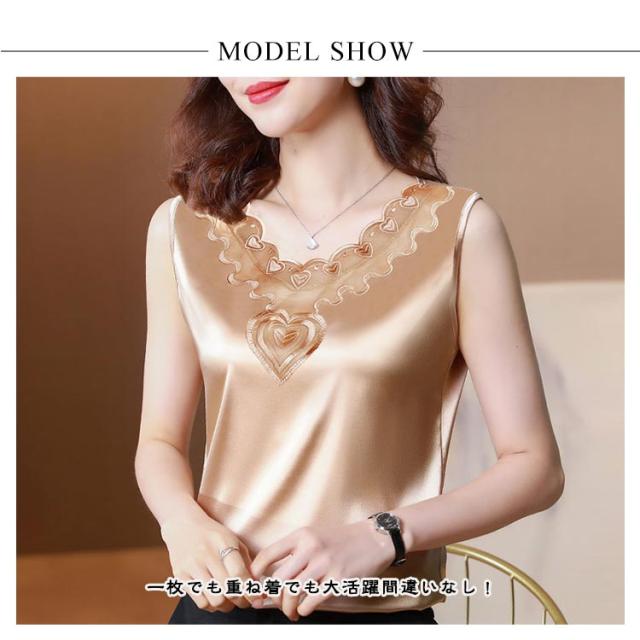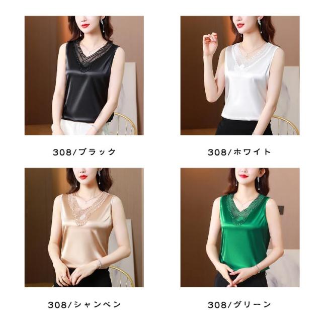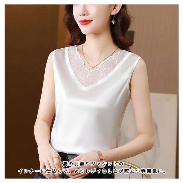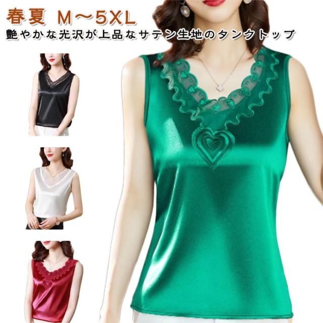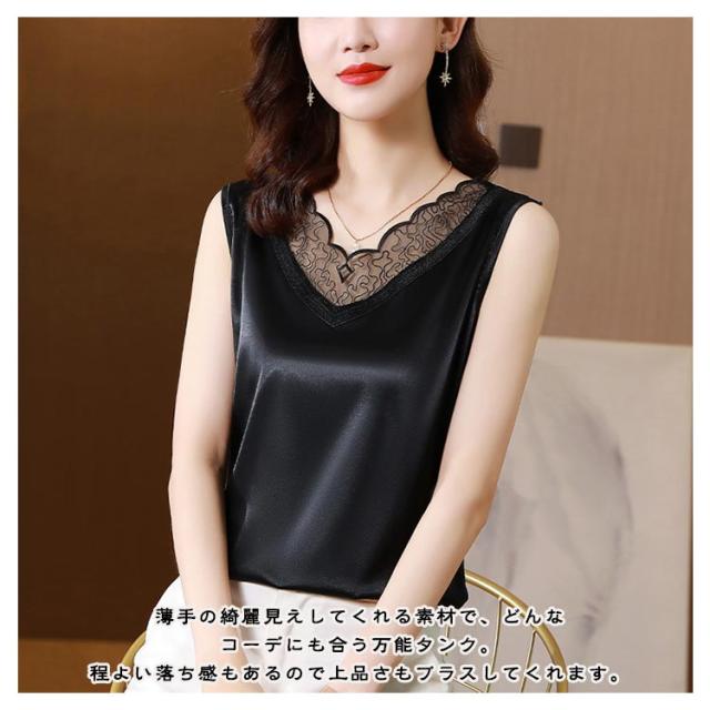 サテン風 サテン風タンクトップ 上品 ブラ紐隠し ブラウス ゆったり Uネック サテン風タンクトップ レディース 袖なし 大きいサイズ トップス ショート丈 インナー 重ね着 きれいめ 光沢感 ツルツル 肌着 薄手 タンクトップ 大人 女性 無地 OL オフィス 通勤