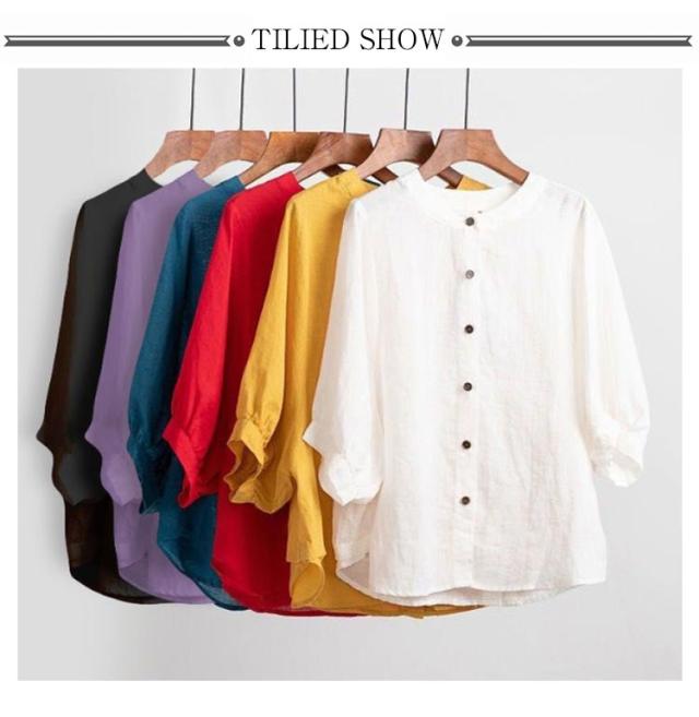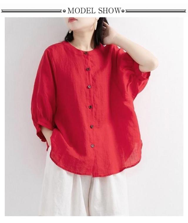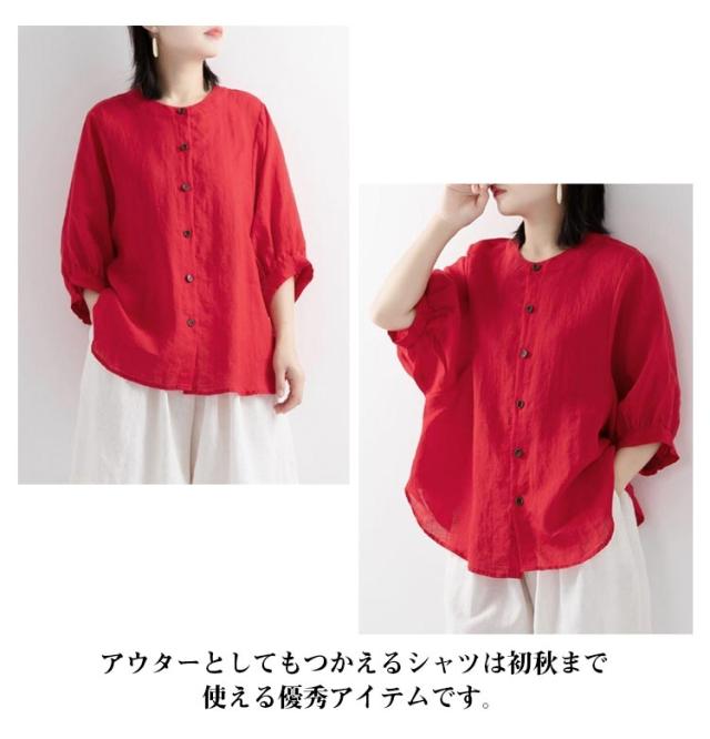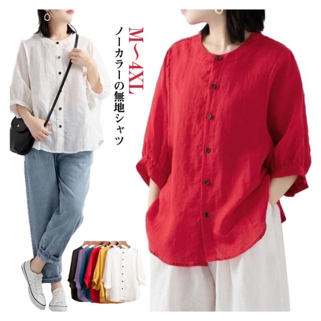 50代 ノーカラー 春 シャツ シャツ 涼しい シャツブラウス 夏 体型カバー シャツブラウス ブラウス 涼しい 綿 レディース トップス 羽織り 大人 女性 カジュアル ゆったり 綿 無地 通勤 大きいサイズ 20代 30代