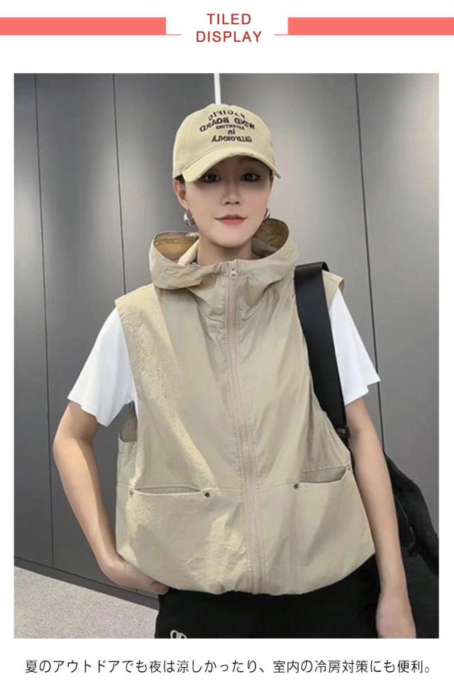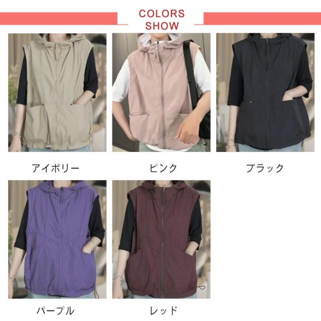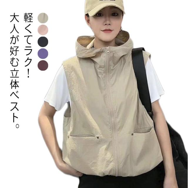 レディース 大きいサイズ アウトドア ファスナー フード付き 前開き ワークベスト 春夏 薄手 アウトドアベスト 女性 ベスト ワークベスト ノースリーブ 作業着 軽量 通気 スポーツベスト お釣り 撮影 山歩き スポーツ カジュアル おしゃれ
