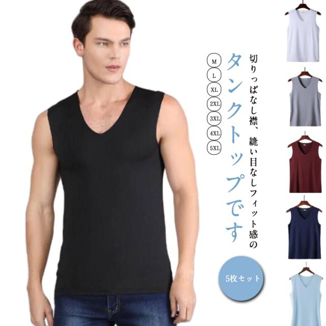タンクトップ 伸縮性 Vネック メンズ ウェア 接触冷感 インナーシャツ 5枚セット シームレス 無縫製 接触冷感 スリム 涼しい トレーニングウェア 筋トレ ノースリーブ ジム フィットネス スポーツウェア 吸汗 速乾 ストレッチ 運動着 tシャツ タンク 大きいサイズ