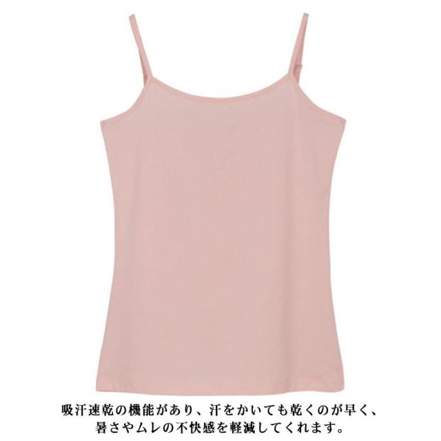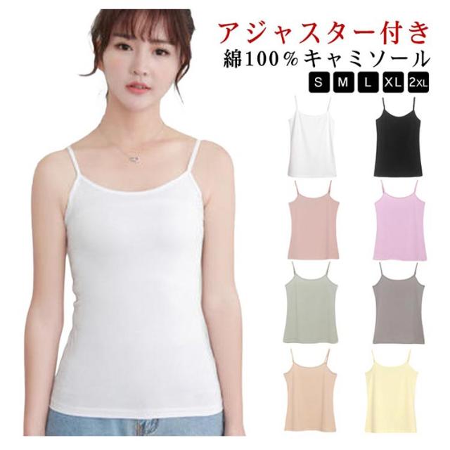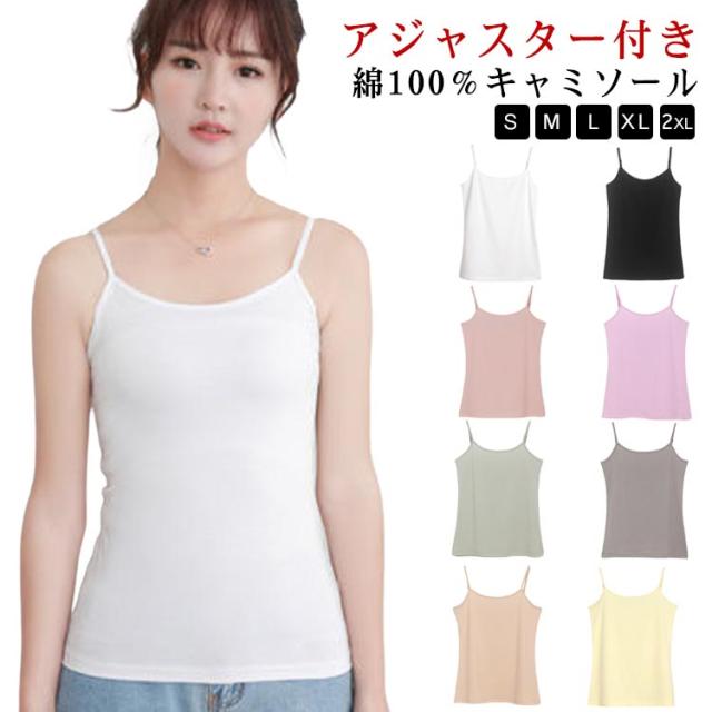 キャミ Uネック 綿100% 丸首 レディース インナー ナチュラル カップなし タンクトップ アジャスター付き キャミソール 春 肩ひも調節 コットン 秋 肌着 夏 くすみカラー キャミソール シンプル 無地 大きいサイズ 綿100% ミントグリーン ピンク 【送無】