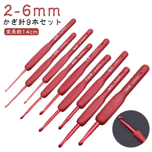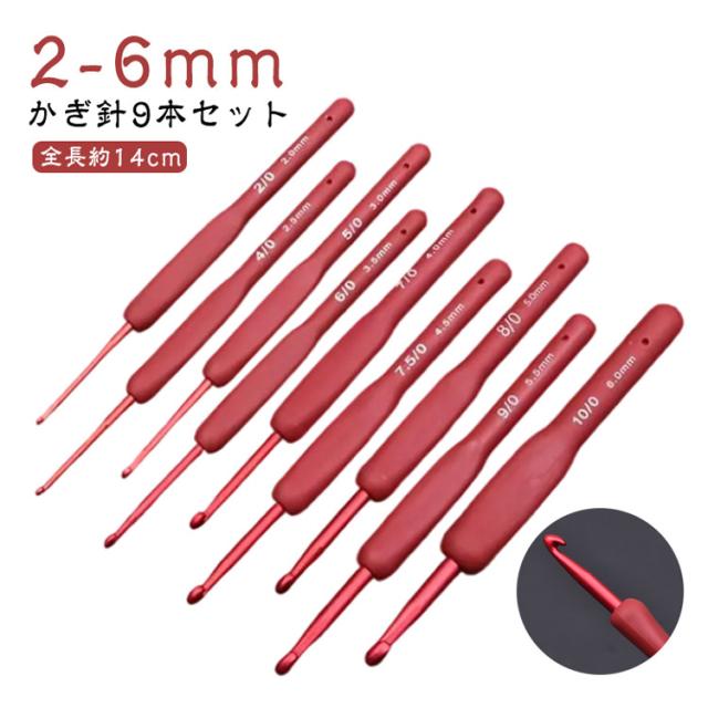 レース針 かぎ針9本セット 2-6mm かぎ針セット クラフト 編み針セット かぎ針 編み道具 セット 9本 手編み 編み物 毛糸 かぎ針セット かぎ針9本セット ニット マフラー 編み物 初心者 赤 基本セット かぎ針セット 手芸 裁縫道具 編み物道具 毛糸 手編み