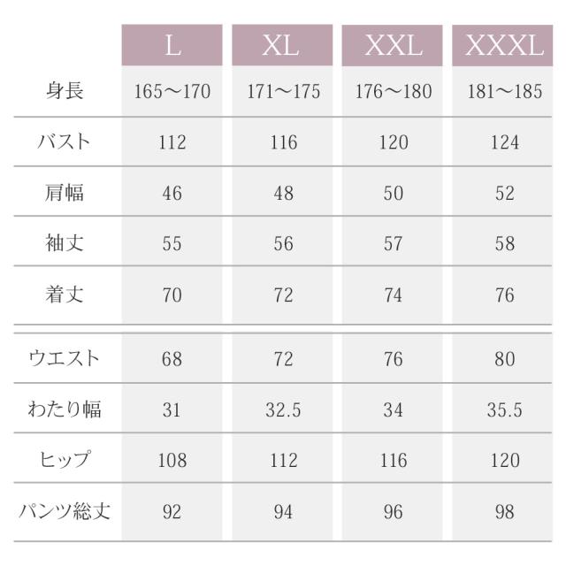 | パンツ総丈 | 92 | 94 | 96 | 98 |
