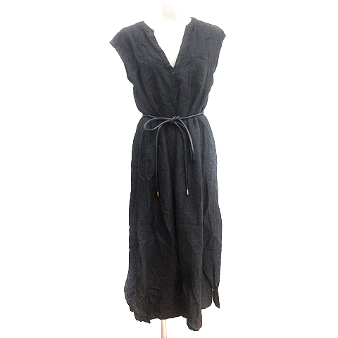 【中古】マリードール MARIED'OR シャツワンピース マキシ ロング スリットネック 麻 リネン フレンチスリーブ 1 S 黒