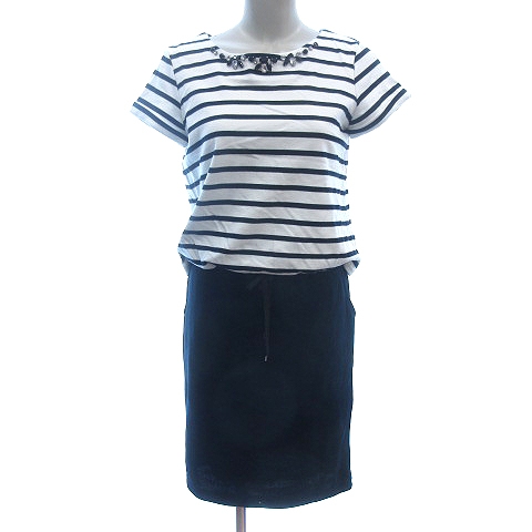 【中古】インデックス INDEX ドッキングワンピース ひざ丈 ビジュー ロールアップ 半袖 M 白 ホワイト /AU レディース