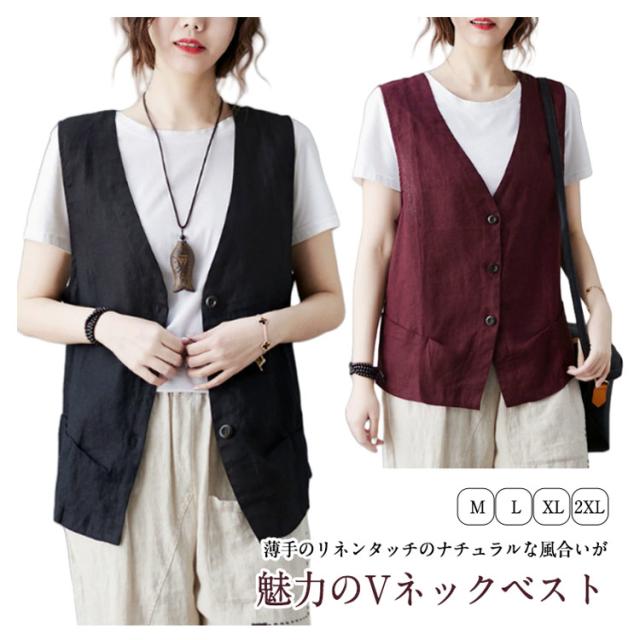 ジレ レディース ベスト レディース 春夏 ベスト レディース 夏 ベスト レディース おしゃれ ベスト ベスト 薄手 前開き トップス ゆったり 大きいサイズ コットン ノースリーブ 羽織り オフィス カジュアル 重ね着 通勤 OL 30代 40代 50代