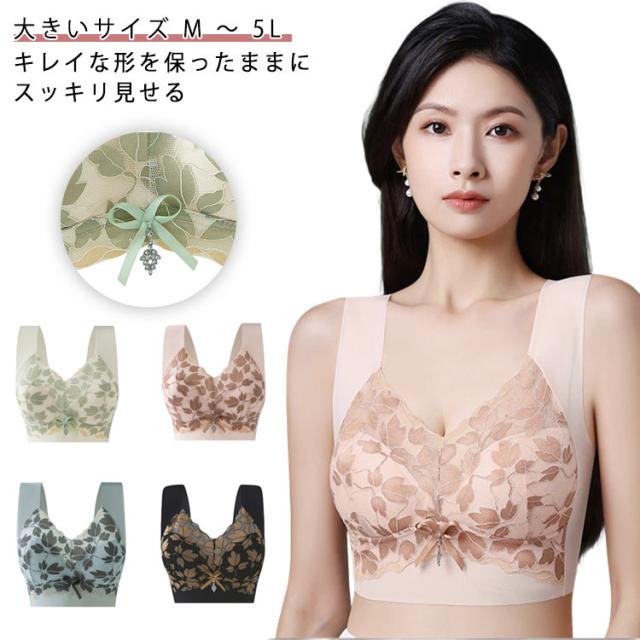 小さく見せるブラジャー ナイトブラ 3L ブラ 大きな胸を小さく見せる 4L 5L ブラキャミソール ブラジャー 胸を小さく見せるブラ 大きいサイズ ワイヤレス 無縫製 レース 薄い 2L ノンワイヤーブラ 下着 インナー 補正下着 薄手 小さく見えるブラ 着?せ シームレス