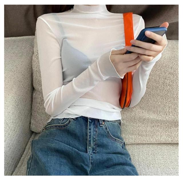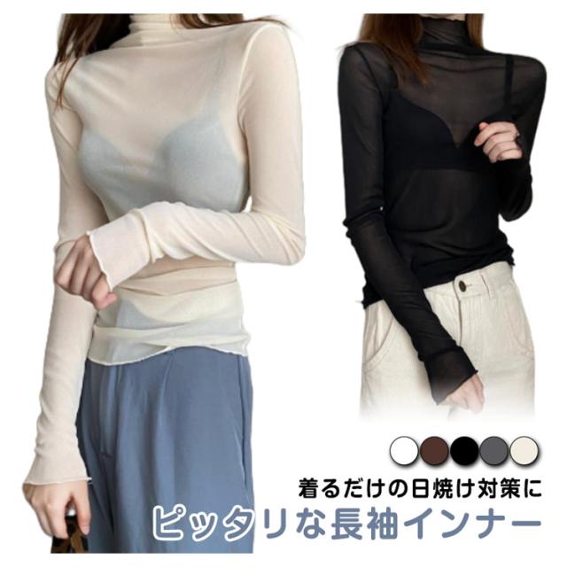 シアートップス シアートップス ハイネック 長袖 レディース 紫外線対策 肌見せ UVカット シースルー tシャツ 接触冷感 UV対策 ボトルネック クール冷感 トップス 冷房対策 レイヤード インナー セクシー きれいめ 透け感 夏