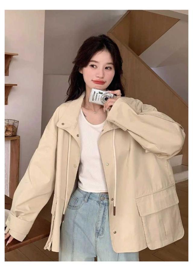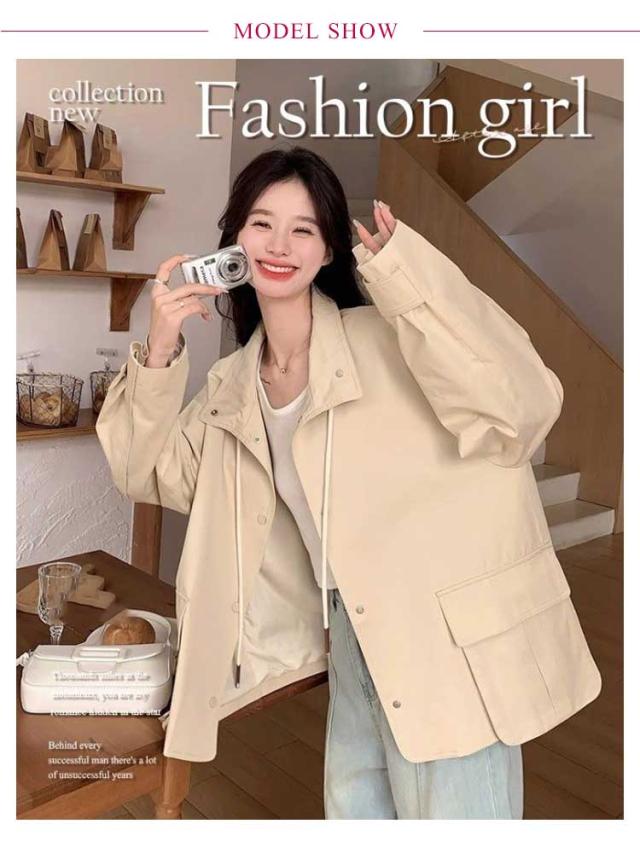 スプリングコート アウター ハイネック ハーフ ショート ショートコート レディース 無地 トレンチコート スタンドカラー ショート丈 羽織り 春コート トレンチ コート ジャケット スプリングコート 体型カバー ゆったり 送料無料