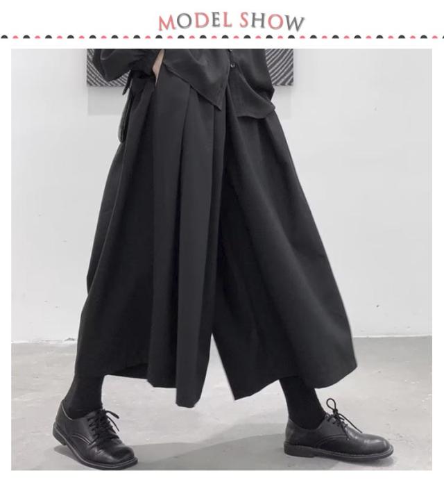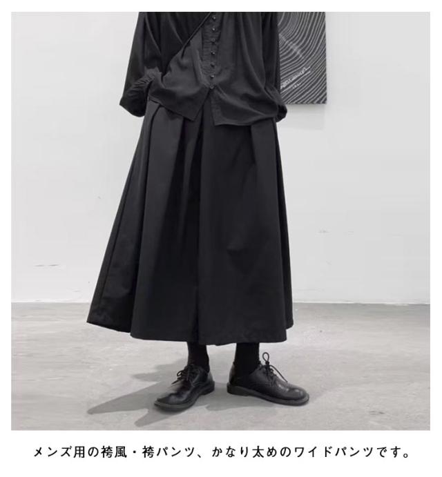 | 【袴パンツ】【M L XL 2XL 3XL】 メンズ用の袴風・袴パンツ、かなり太めのワイドパンツです。 かっこいいをコンセプトとした、おしゃれでシックなモード系やゆったりしたレイヤードファッション等に良く合います。 メンズ用ですが、ユニセックス仕様でレディースとしても着用可能です。 袴のようにかなり大きいサイズ感のあるシルエットで、体型カバーもできます。 ポリエステルなので、シワになりにくく速乾性に優れているため直ぐに乾きます。 | |