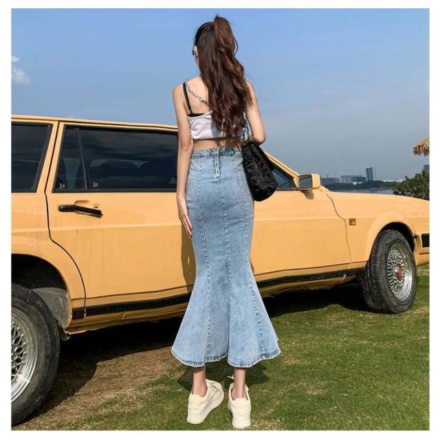 マーメイドスカート タイト マーメイドスカート 秋 スリット ロング丈 春夏 オールシーズ 着痩せ ボトムス 美脚 無地 デニムスカート ジーンズ 美しい おしゃれ 可愛い シンプル ハイウエスト フレアスカート コーデ 大きいサイズ 脚長効果