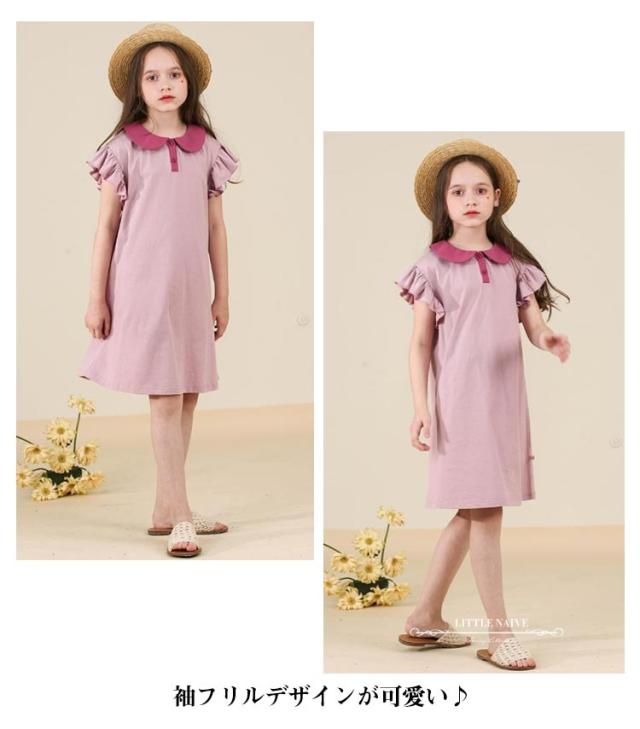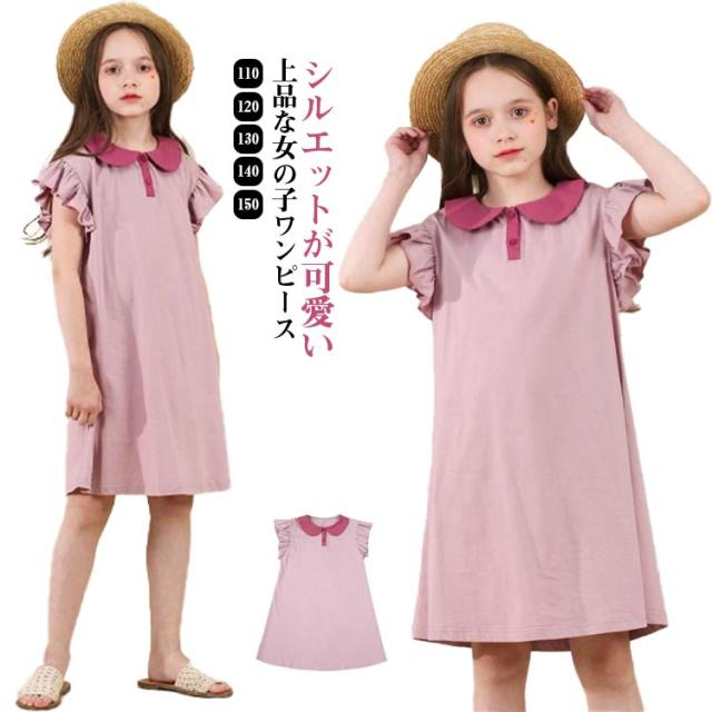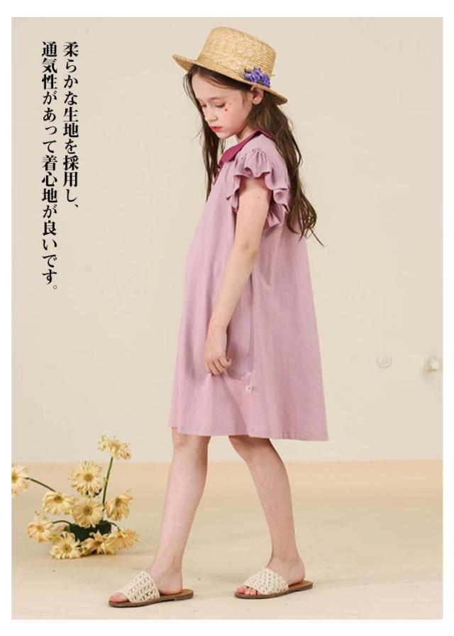 フリル袖 130 子供服 110 キッズ 夏服 ポロワンピース 子ども服 ポロシャツ ワンピース キッズ服 ひざ丈ワンピース 可愛い 女の子 シンプル 半袖 こども服 春夏 120 子供服 140 150 通園 ギフト プレゼント