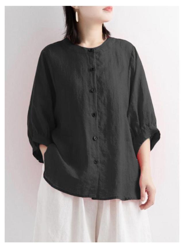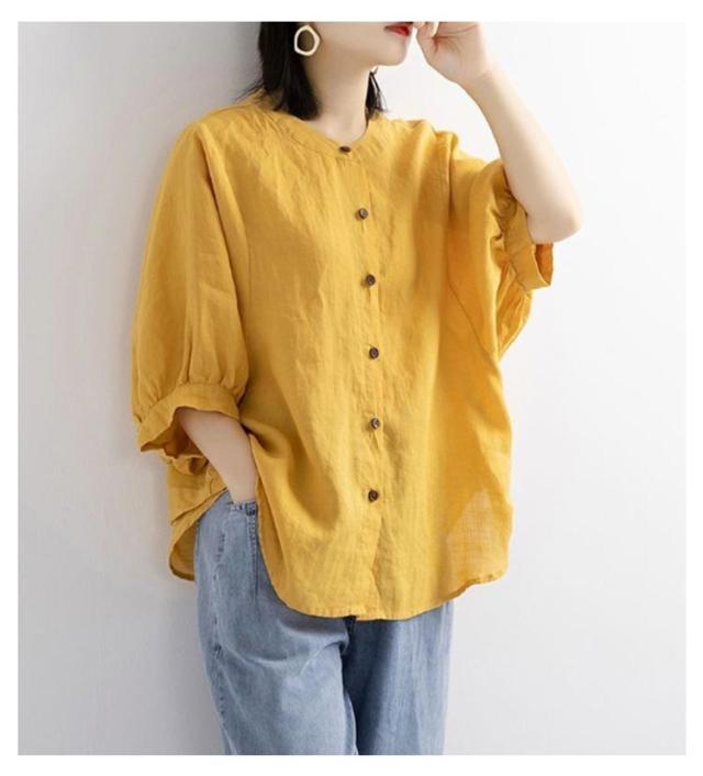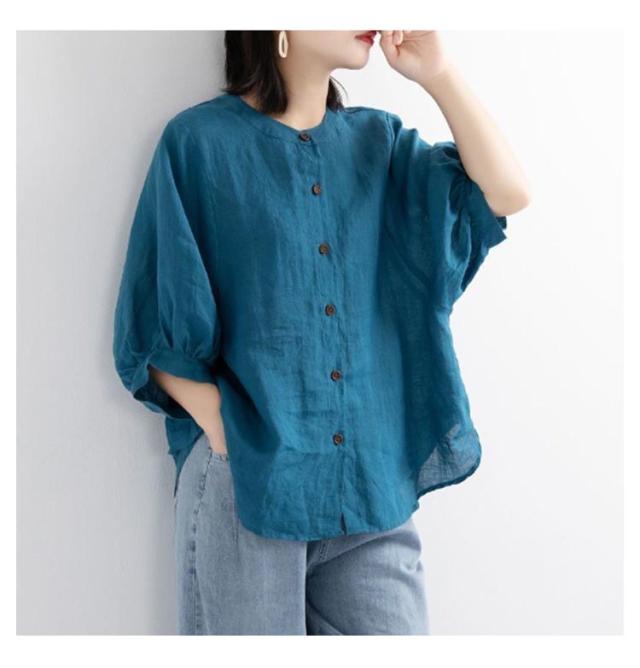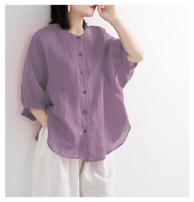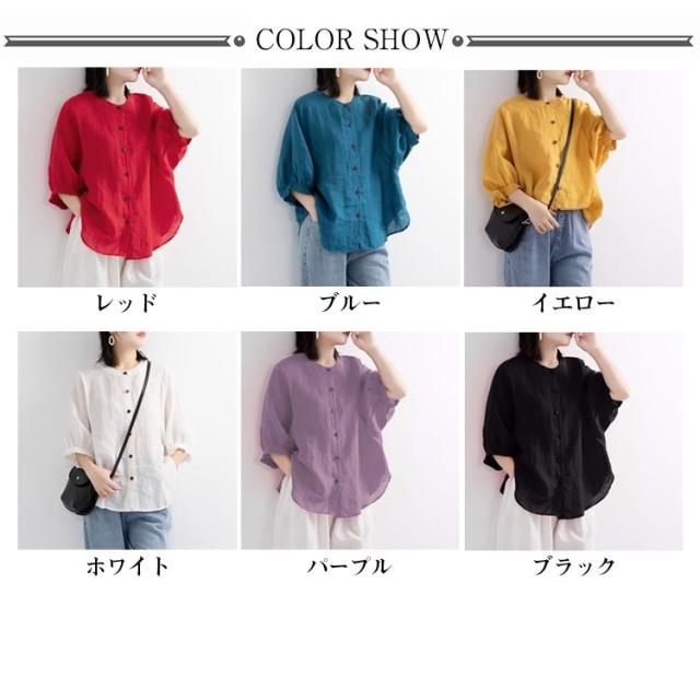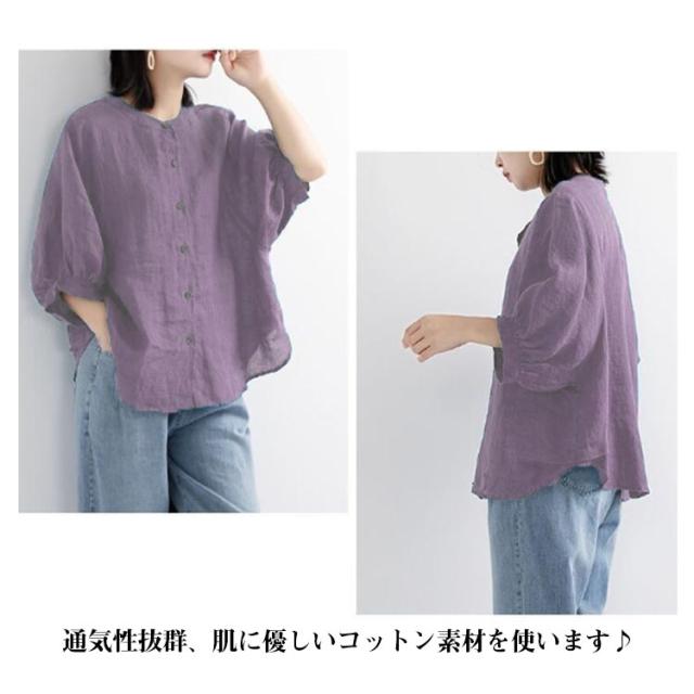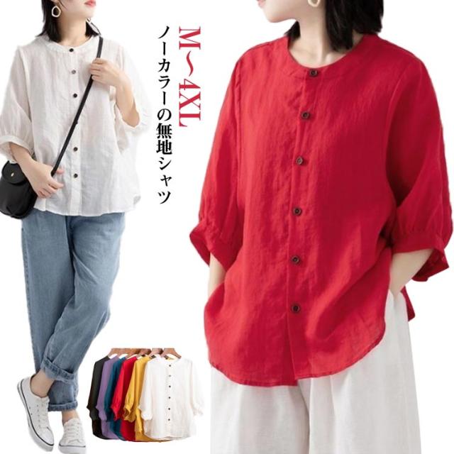 夏 シャツ レディース 涼しい 涼しい シャツブラウス トップス 体型カバー 50代 綿 ブラウス シャツ 羽織り シャツブラウス 7分袖 ノーカラー 大人 女性 カジュアル ゆったり 綿 無地 通勤 大きいサイズ 20代 30代