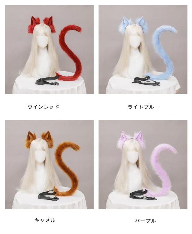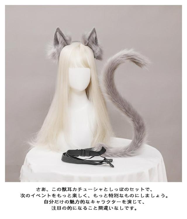 カチューシャ 猫 獣耳 道具 2点セット 小物 ネコミミ LOLITA 猫耳 衣装 コスプレ ネコ ハロウィン 獣耳 仮装 かわいい パーティー セット しっぽ もこもこ コスチューム cosplay 学園祭 イベント 小物 道具 衣装 ギフト プレゼント