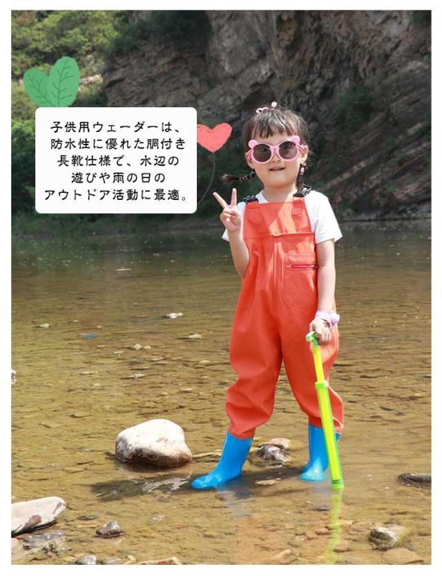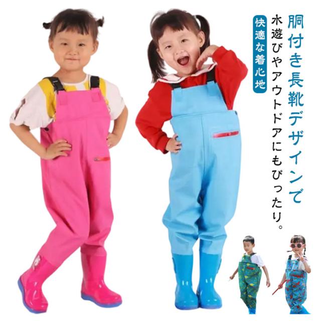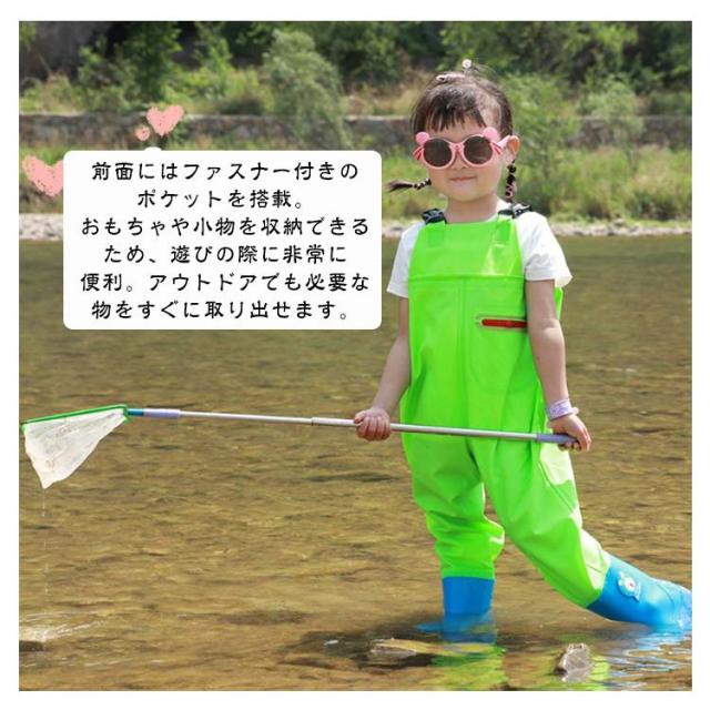 水遊び 防水 長靴付き チェストハイウェーダー ウェーダー 胴長 女の子 長靴付き プレイウェア 川 お砂場着 雨の日 田んぼ 遊び 釣り 子供用 軽量 快適な着心地 耐摩耗性 男の子 胴付き長靴 レインパンツ 収納ポケット付き 海 梅雨 長靴一体型 通学 雨具