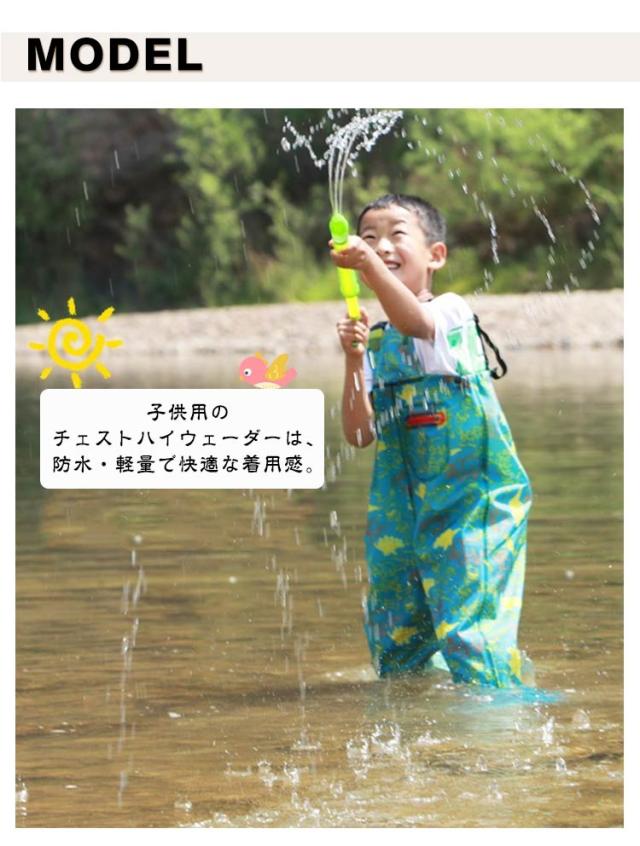 | 胴付き長靴デザインで水遊びやアウトドアにもぴったり。子供用のチェストハイウェーダーは、防水・軽量で快適な着用感。 子供用ウェーダーは、防水性に優れた胴付き長靴仕様で、水辺の遊びや雨の日のアウトドア活動に最適。チェストハイウェーダーのデザインにより、水濡れを心配せずに存分に楽しめます。砂場遊びや川遊びでも安心です。 靴底には耐摩耗性の高い厚めのソールを採用し、滑りにくく安定感抜群。水中の硬い石やぬかるみでも安心して遊べる設計です。丈夫な素材で、長期間お使いいただけます。 ウェーダーにはPVCナイロン素材を使用し、柔らかく快適な着心地を実現。長時間の使用でも疲れにくく、子供が自由に動き回ることができます。さらに、防水加工で汚れも簡単に拭き取れます。 前面にはファスナー付きのポケットを搭載。おもちゃや小物を収納できるため、遊びの際に非常に便利。アウトドアでも必要な物をすぐに取り出せます。 さまざまなシーンで活躍!家庭での水遊びだけでなく、キャンプや川釣り、アウトドアイベントなど多様なシーンで活躍します。胴長デザインが水濡れをしっかり防ぎ、どんな場所でも快適に使えます。 | |