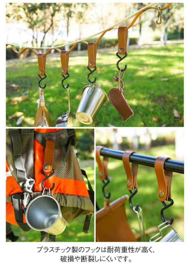 レザーフック アウトドアフック フック 小物収納 吊るす フック ソロキャンプ アウトドア テント ハンギングラック ハンガーラック キャンプ用品 キャンプ 登山 吊り下げ アウトドアフック 収納