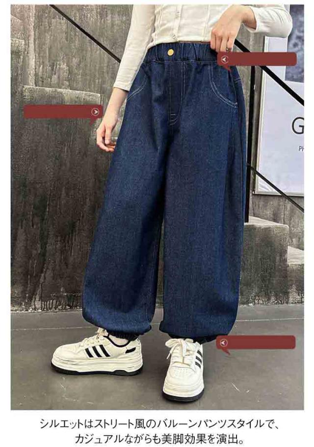 子供服 ゆったり ビッグシルエット 女の子 キッズ ジョガーパンツ バルーンパンツ デニムジョガーパンツ デニム キッズ デニムパンツ 子ども ウエストゴム ジュニア 普段着 120 130 140 150 160 170