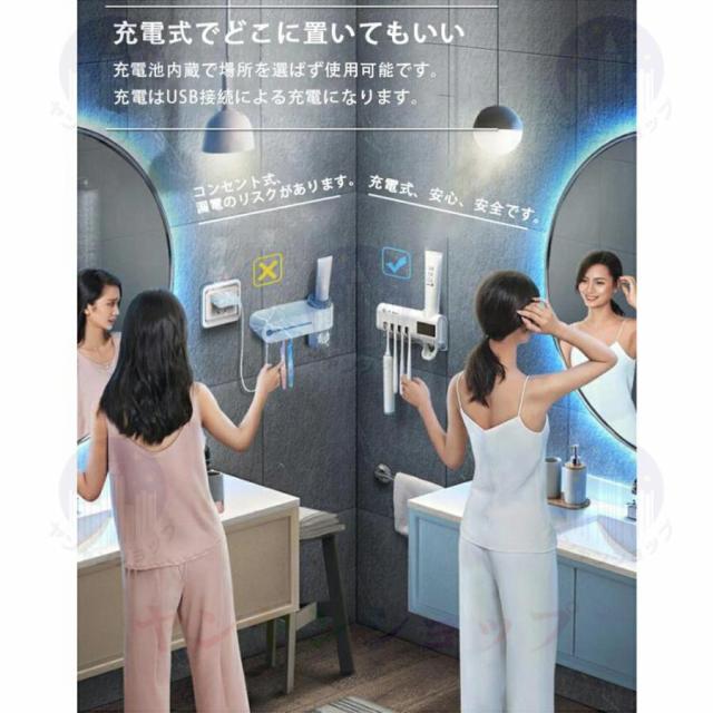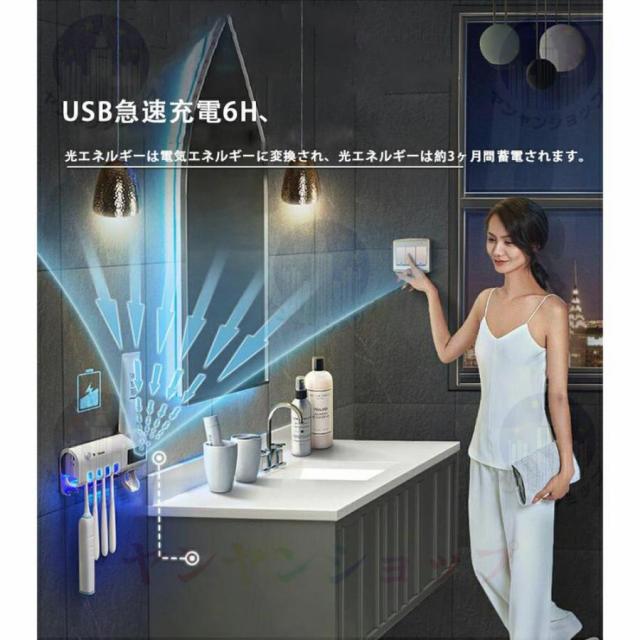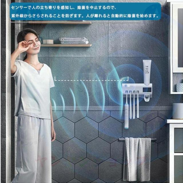歯ブラシスタンド 歯ブラシ除菌器 おしゃれ UV紫外線歯ブラシ消毒器 北欧 吸盤 自動除菌 壁掛け歯ブラシスタンド 歯磨き粉ディスペンサー 壁掛け式 カビ防止
