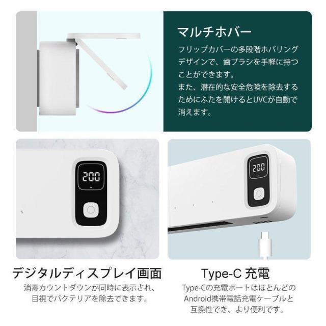 歯ブラシ 除菌器スタンド 壁掛け ケース 収納 USB 家庭 衛生的 UVCライト 充電式 紫外線c波 殺菌灯