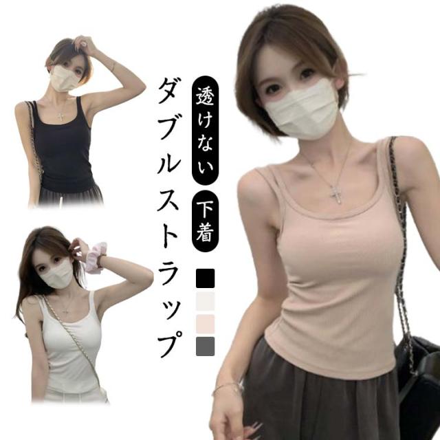 ブラジャー ノーワイヤー レディース カップ付き ブラキャミ リブ ダブルストラップ 下着 透けない 綿 ブラキャミソール インナー タンクトップ パッド 通気性 キャミソール ブラトップ スリム ストレッチ 蒸れない コンパクト 春 夏 秋 大人可愛い 【送無】